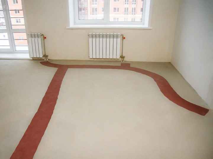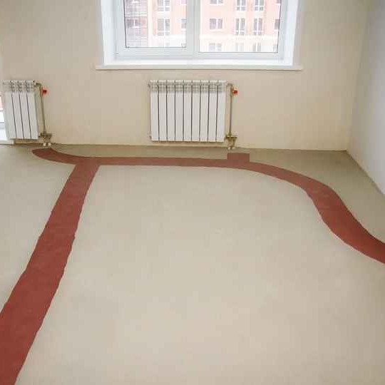 В квартирах подготовлена стяжки пола, в которой скрыты коммуникации горизонтальной системы отопления. Она же является базой для укладки различных чистовых отделочных материалов: керамогранита, плитки, ламината или паркета.